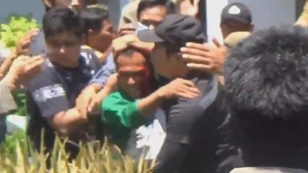 Mahasiswa tertangkap oleh petugas Satpol PP saat berusaha menerobos Kantor DPRD Palopo. (Foto: iNews).