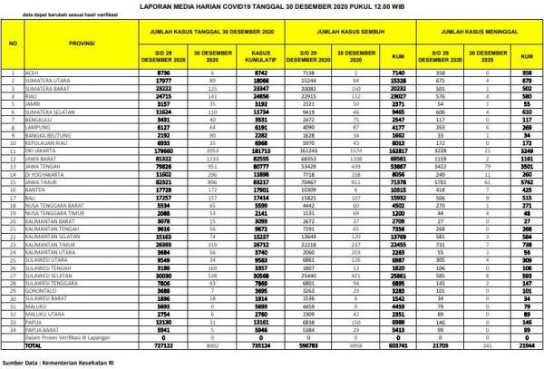 JAKARTA, iNews.id - Update terbaru jumlah warga di Sulawesi Selatan yang terkonfirmasi positif Covid-19 mencapai sebanyak 30.568 orang pada Rabu (30/12/2020) hari ini. Ada penambahan 538 kasus baru dalam sehari dari sebelumnya 30.030 orang.