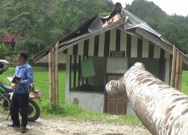 Sementara itu, Posyandu yang dihantam puting beliung juga rusak parah. Bagian atapnya sampai terlepas ditiup angin. Kusen kayu penyangganya juga patah.