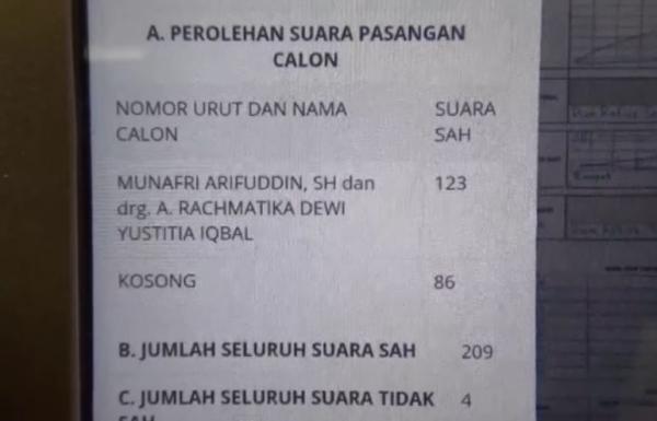 Rekapitulasi suara C1 dari salah satu TPS di Kecamatan Tamalate Makassar.