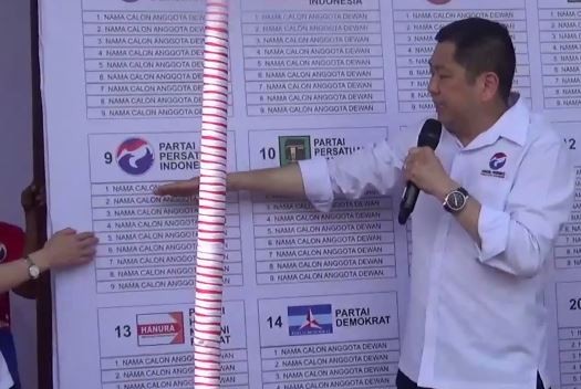 “Jadi ingat ya nanti tanggal 17 April, coblos nomor sembilan Partai Perindo atau nama calegnya, itu sama saja. Partai Perindo hadir untuk Indonesia Maju. Dan untuk itu rakyat harus sejahtera sesuai visi dan misi kami,” kata HT.