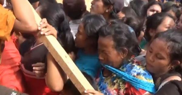 Sejumlah anak dan ibu-ibu terjepit saat emngantre zakat maal di Kota Makassar. (Foto: iNews.id)