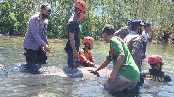 PAREPARE, iNews.id - Tim Search And Rescue (SAR) Brimob Parepare Batalyon B Pelopor Satuan Brimob Polda Sulawesi Selatan (Sulsel), mengevakuasi seekor ikan duyung, Sabtu (29/5/2021). Ikan yang juga disebut halicora dugong itu ditemukan warga Kecamatan Bacukiki Barat, Kota Parepare.