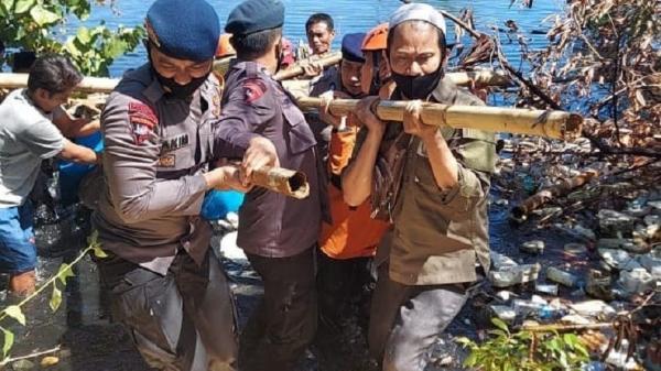 PAREPARE, iNews.id - Tim Search And Rescue (SAR) Brimob Parepare Batalyon B Pelopor Satuan Brimob Polda Sulawesi Selatan (Sulsel), mengevakuasi seekor ikan duyung, Sabtu (29/5/2021). Ikan yang juga disebut halicora dugong itu ditemukan warga Kecamatan Bacukiki Barat, Kota Parepare.