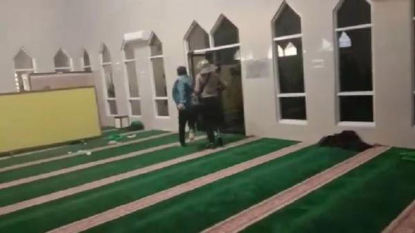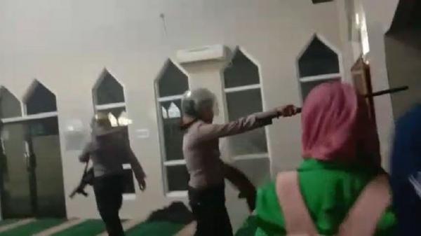 Dalam video yang diterima iNews.id, dalam rekaman video berdurasi 30 detik, dua orang polisi antihuru-hara lengkap dengan senjata dan tongkat pemukul, masuk ke dalam masjid. Mereka masih mengenakan sepatu, menarik para mahasiswa keluar dari tempat ibadah tersebut.